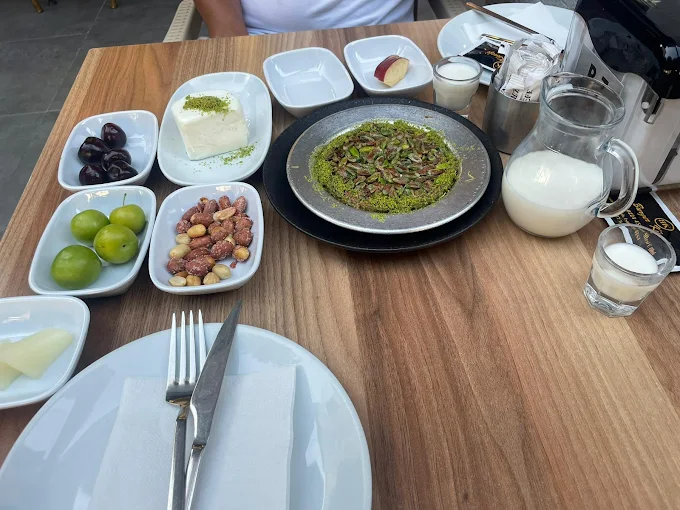 Yaratıcı bir dokunuşla “burger” görünümünde hazırlanan künefe, tam üç katlı bir tatlı sunumu olarak dikkat çekiyor — aralarına dondurma ve kaymakla zenginleştirilmiş